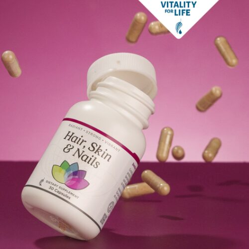 Quizás estés viendo los signos del envejecimiento, tales como cabello quebradizo, piel cansada o uñas débiles. O tal vez desees retrasar la aparición de estos signos lo más posible. De cualquier manera, te conviene tomar nuestro suplemento diario para el cabello, la piel y las uñas. Ha sido formulado específicamente para fomentar el crecimiento del cabello a nivel celular, igualar el tono de la piel, proteger la elastina y el colágeno, y nutrir las uñas para que sean más gruesas y fuertes.